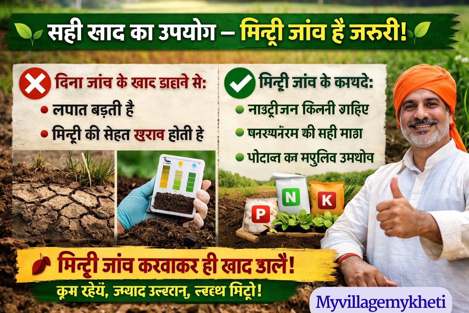 मिट्टी जांच से पता चलता है कि नाइट्रोजन, फास्फोरस, पोटाश कितनी मात्रा में चाहिए।